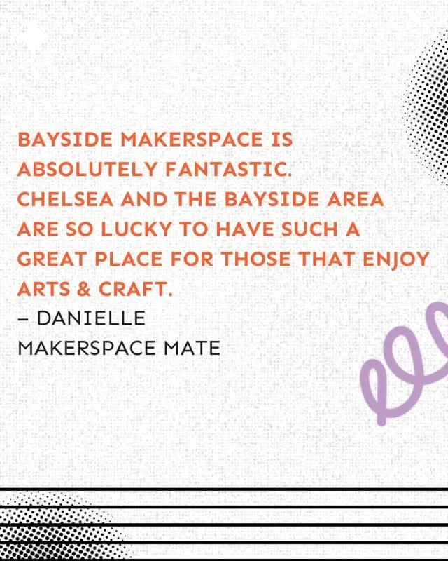 Bayside Makerspace is absolutely fantastic. Sez runs so many different courses, there really is something for everyone. Sez is really lovely - Chelsea and the Bayside area are so lucky to have such a great place for those that enjoy arts & craft.