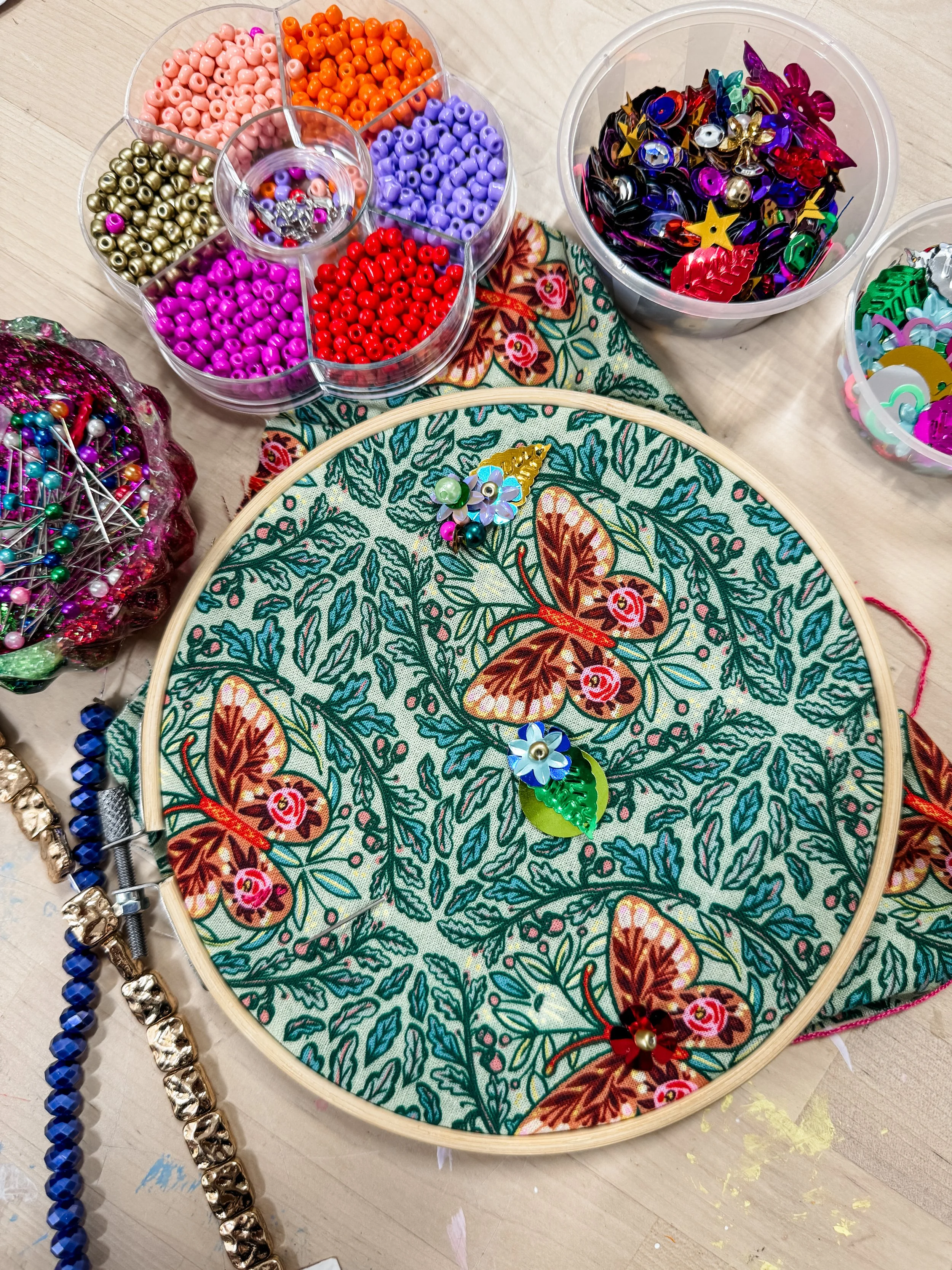 Bring your own project—whether it’s sewing, embroidery, or punch needling—and get hands-on support and inspiration. Access our sewing machines, basic tools, and creative resources while you explore, experiment, and level up your skills.