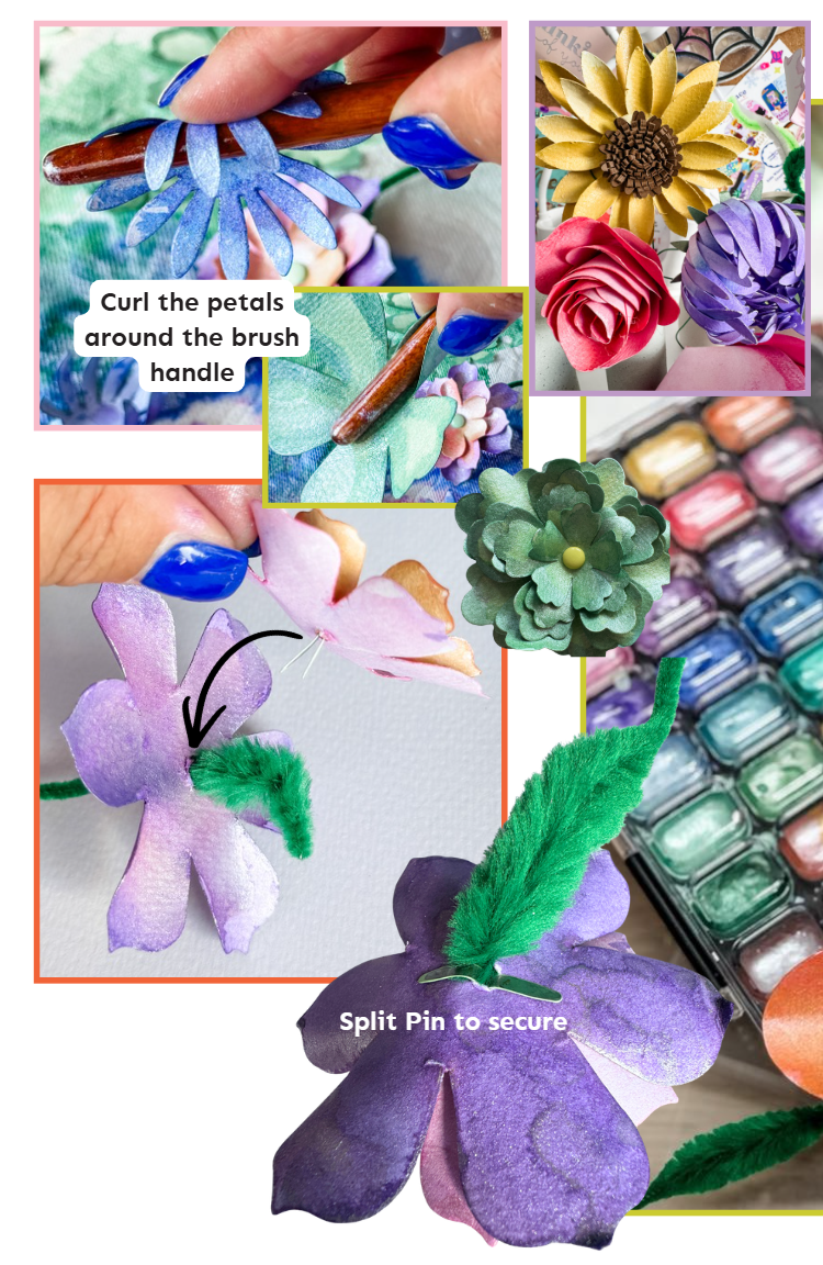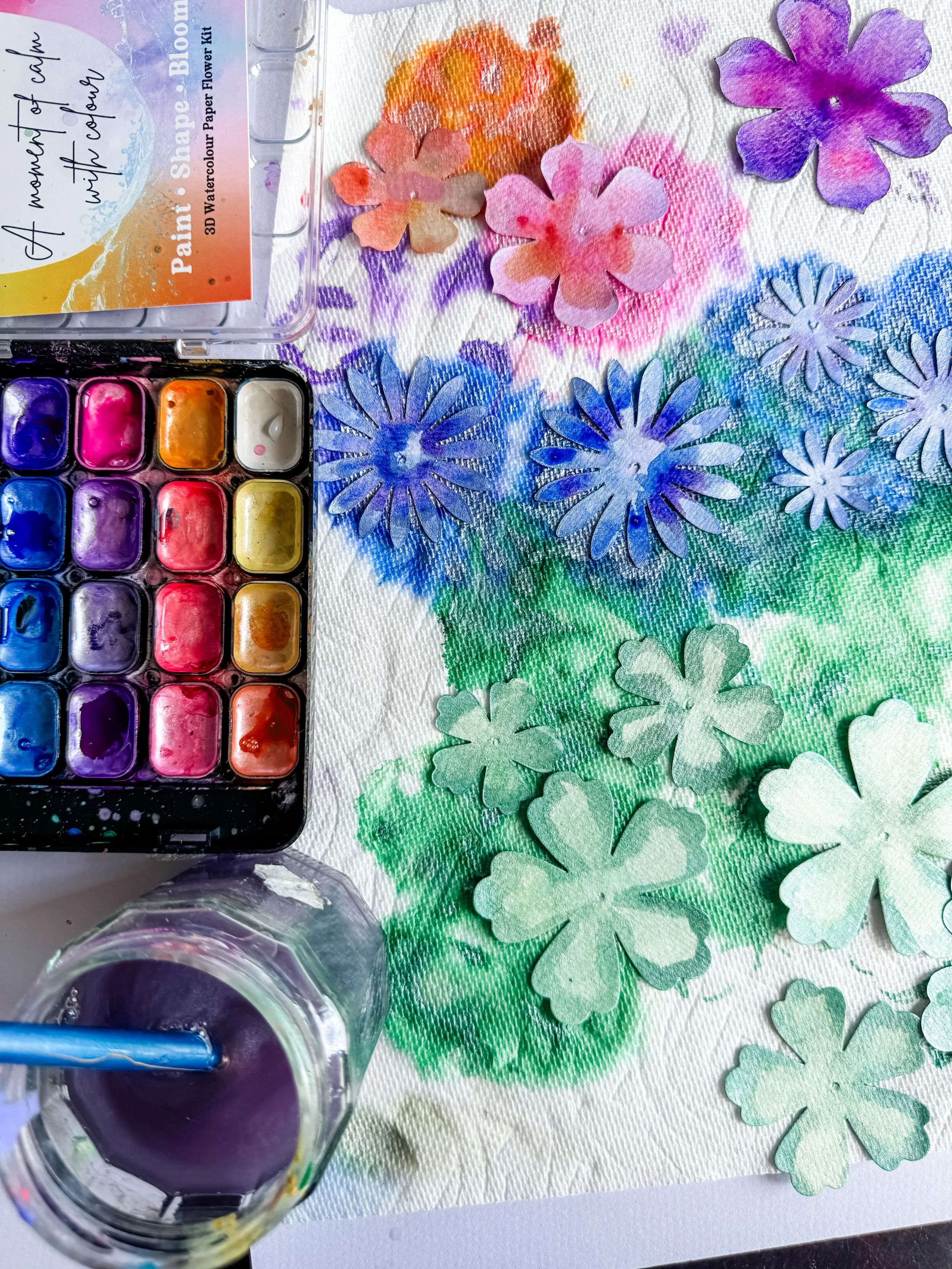 Tutorial of how to paint and sculpt the watercolour paper flowers in the kit.